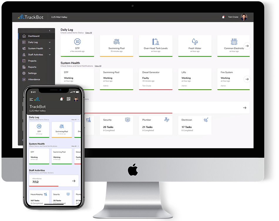 TrackBot™ from LetUSense LLP simplifies your day to day monitoring overheads with one integrated platform. TrackBot™ comes with loads of Smart Features to make your day to day operational monitoring of various amenities simpler. TrackBot™ coordinates the People, Process and Technology to function smoothly and efficiently to bring Operational Excellence.